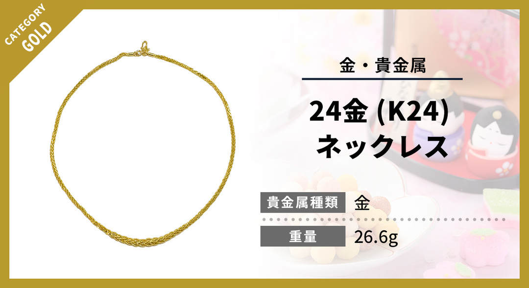 24金 (K24) ネックレスは、金相場の影響を受けながらも安定した需要があります。